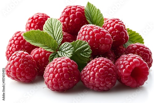 Ripe raspberries with leaf isolated on a white background
