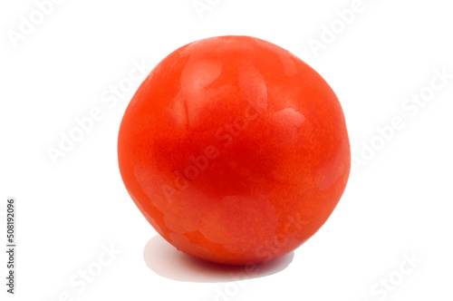 ripe tomato on a white background. the concept of cooking tomato sauce. red vegetable on a light texture. juicy pink tomate on the table