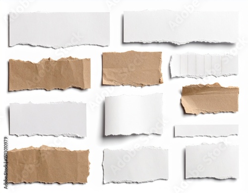 Ripped paper pieces captured for artistic on white background