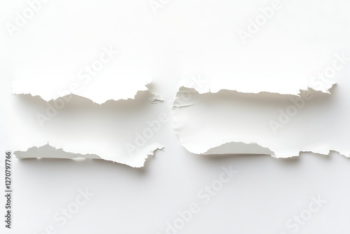 Ripped white paper strips on white background, for design elements