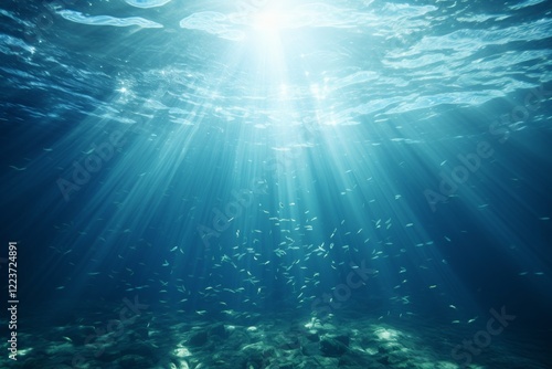 Rippling sunlight illuminates the depths of an enchanting underwater world. Generative AI