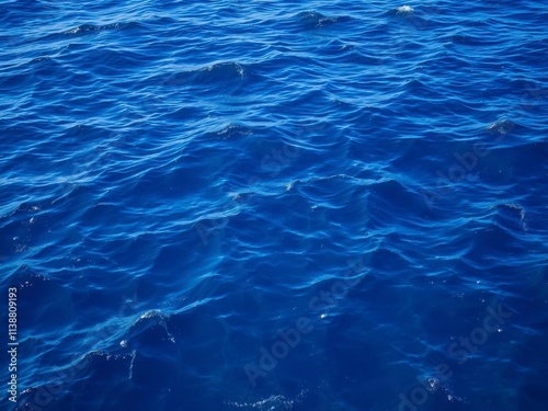 Rippling waves of deep blue ocean water with sunlight reflecting, creating a mesmerizing texture, sea, rippling