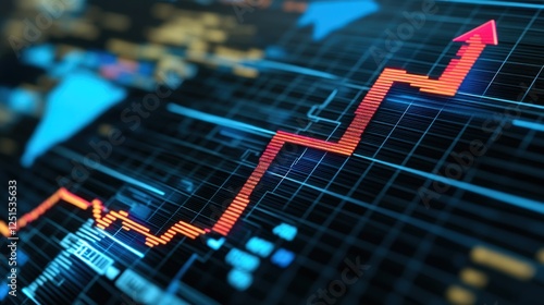 Rising digital graph shows market growth, global data background