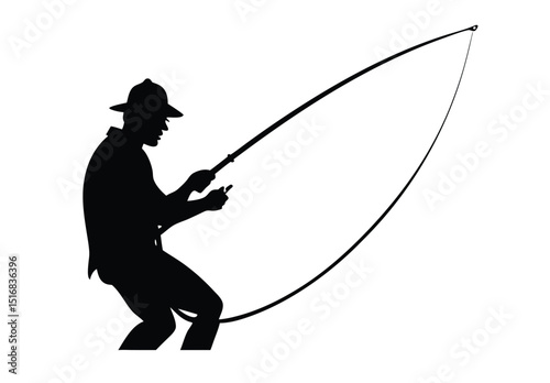 River Fishing Silhouette with Fisherman Vector for Logos Prints and Creative Projects