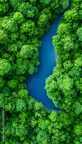 River winds through lush green forest. Ideal nature background for brochures generative AI