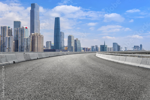 Road pavement and Guangzhou city buildings skyline