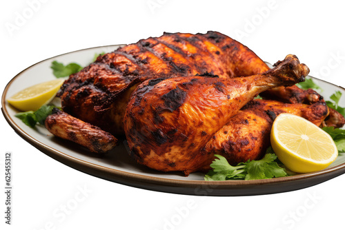 roasted chicken on a plate Tandoori Chicken Indian spice, Transparent background. generative AI