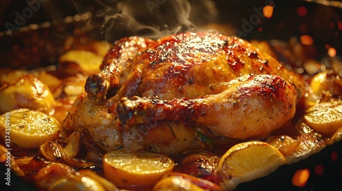 Roasted chicken with lemon and vegetables