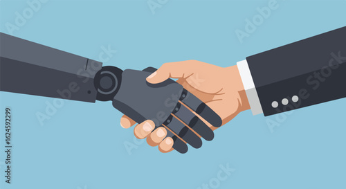 Robot and Human Handshake on Plain Background for Future Technology Concepts