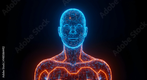 Robot, Artificial intelligence, Ai, Futuristic Cyborg Head and Shoulders