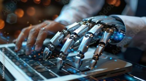 robot hand on laptop keyboard