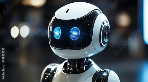 Robot Head with Glowing Blue Eyes Technology and Artificial Intelligence