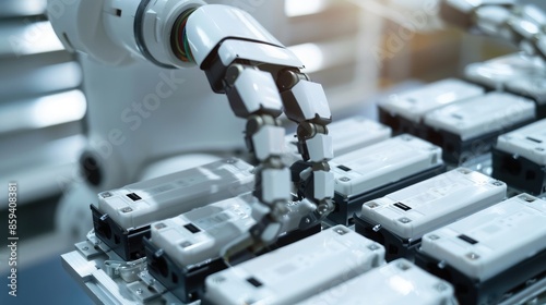 Robot precisely placing cells into battery packs in a modern production facility. Battery Pack Manufacturing Process