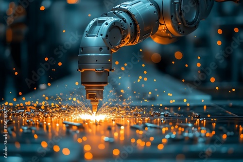 Robotic Arm Cutting Metal with Sparks in Industrial Setting