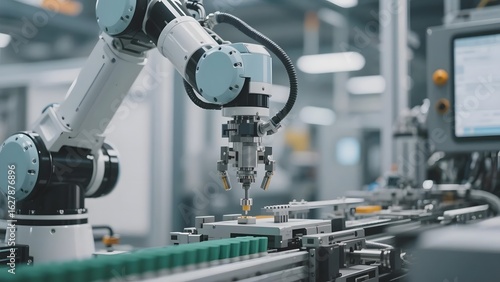 Robotic Arm Operating on a Conveyor Belt in a Modern Factory