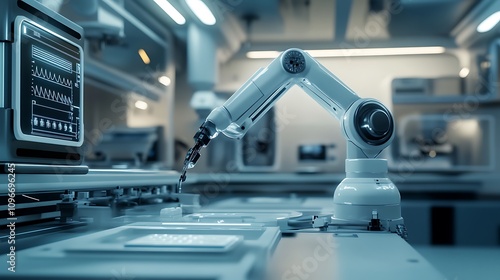 Robotic arm performing precision tasks in advanced technology lab futuristic environment close-up viewpoint