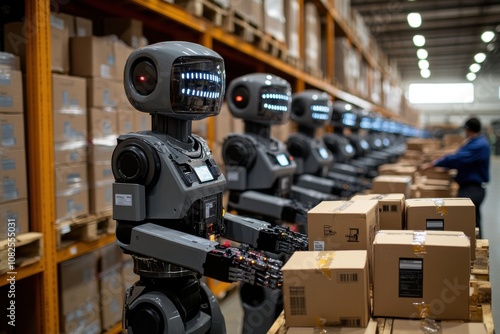 Robotic arms efficiently loading boxes in an automated warehouse