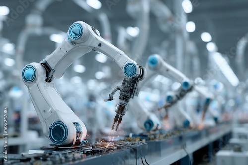 Robotic arms working on an assembly line in a modern factory setting
