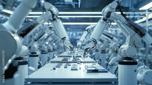 Robotic Arms Working on Circuit Boards in Modern Factory Setting