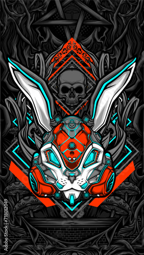 robotic cyberpunk rabbit mask illustration for t shirt design