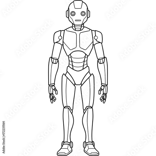Robotic Figure Line Art A Simple Mechanical Humanoid Illustration