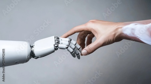 Robotic hand and human hand touching; future tech collaboration
