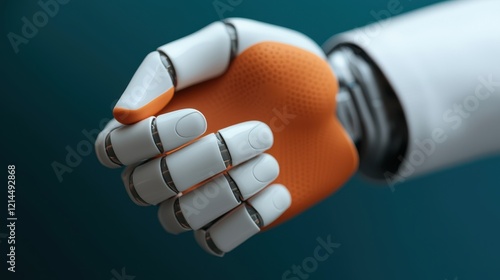 Robotic Hand Shaking Gesture with Orange and Silver Design