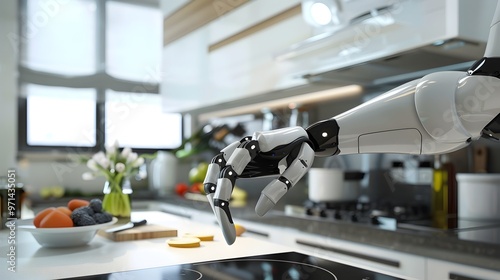 Robotic Kitchen Assistant Preparing Meal in Modern Home Kitchen