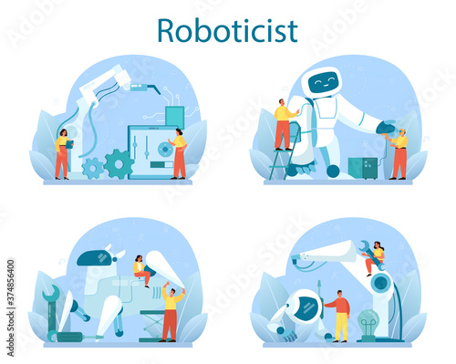 Roboticist concept set. Robotic engineering and constructing