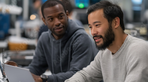 Robotics Engineers Collaborate on Mobility Robot in High-Tech Lab