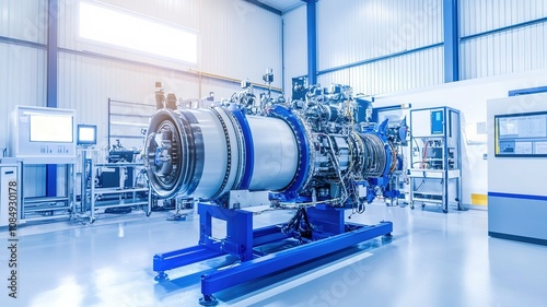 Rocket engine test facility with engineers monitoring the powerful thrust and performance of a cutting-edge propulsion system, showcasing advanced aerospace technology and innovation.