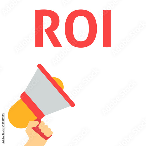 ROI Announcement. Hand Holding Megaphone With Speech Bubble
