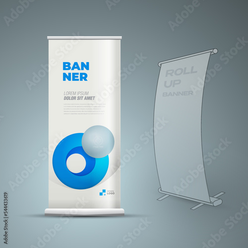 Roll up banner circles theme blue color vector