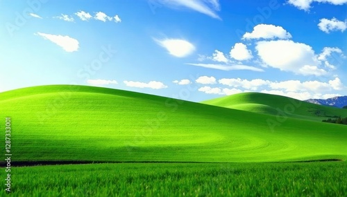 rolling hills of green grass meet the open sky, field, horizon, summer