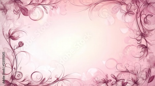 romantic background with hand-drawn floral patterns framing a soft pink gradient