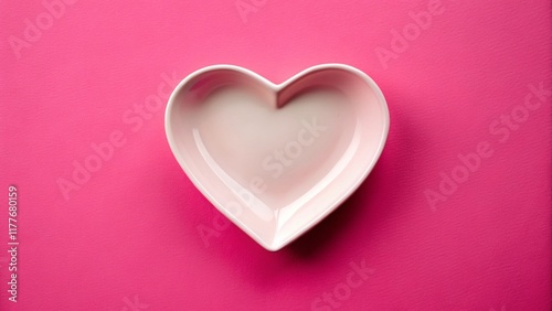 Romantic Heart-Shaped Plate Flat Lay on Pink Background - Macro Photography Stock Photo