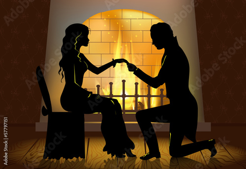 Romantic proposal near fireplace