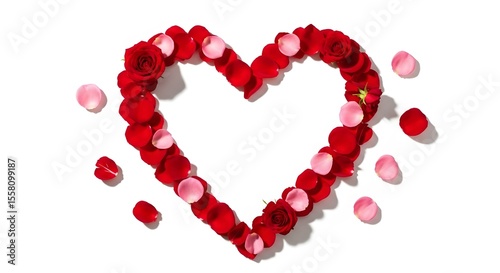 Romantic Red and Pink Rose Petals Arranged in a Heart Shape on White Background Valentines Day