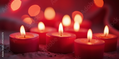Romantic Scene with Red Candles and Glowing Flames, Soft Light and Cozy Atmosphere for Valentine's Day Concept