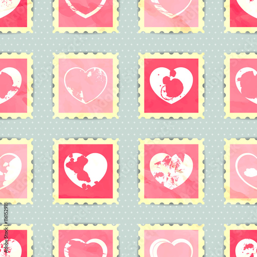 Romantic seamless pattern with heart stamps. Vector seamless texture for wallpapers, pattern fills, web page backgrounds