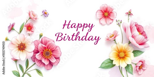 Romantic watercolor flowers in pink and white with text space on purple background for women's day, mother's day, flowers, space for text, birthday