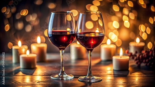 Romantic Wine Night: Two Glasses of Red Wine, Couple's Date, Wine Tasting, Elegant Dinner, Romantic Setting, Red Wine Glasses, Wine Lovers, Cheers