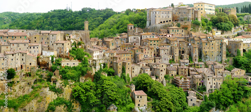 Rooftops of Sorano, an ancient medieval hill town hanging from a tuff stone over the Lente River.