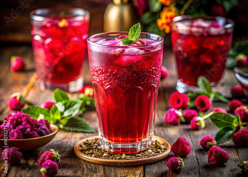 Rooh Afza (Rose Water) Herbal Drink with Copy Space Botanical Syrup Beverage