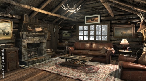 room with wooden walls and rustic decoration. generative ai