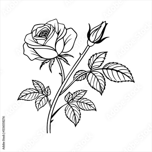 rose line art with rose icon