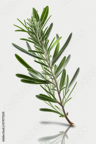Rosemary sprig, seasoning on white background. Illustration of aromatic spice for cooking. Hand drawn, drawing. Image is AI generated.