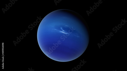 Rotation of the blue planet Neptune in cosmic stellar space, computer generated. 3d rendering of realistic background. Elements of this image are presented by NASA