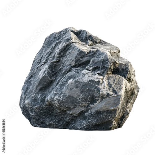 Rough black rock on a white isolated background showcasing natural textures and formations.