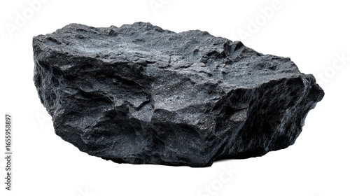 Rough Dark Textured Igneous Rock Isolated on White, cut out transparent
